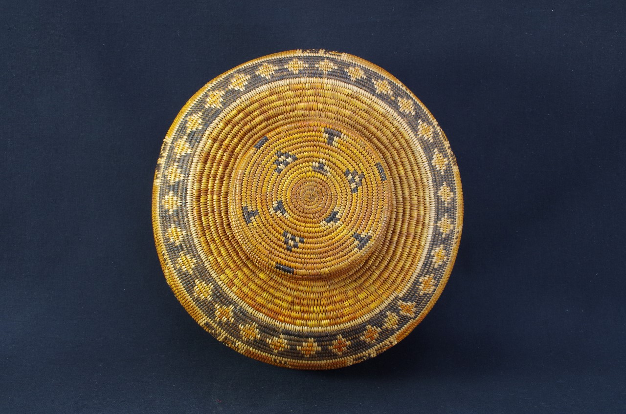 A fine and Rare Chumash Polychrome Lidded Olla Basket